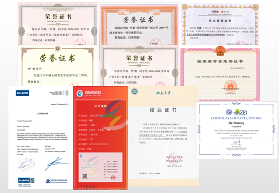 硕士期间,何霜曾获国家奖学金、一等学业奖学金、春雨奖学金等奖项与优秀共产党员等称号;曾6次参加国际国内学术会议并宣读论文;2020年作为John Benjamins“翻译学研究参考书目”项目编辑助理参与文献整理工作;2021年参加北京大学“人类命运共同体下的东方文学”暑期课程。何霜多次参与或主持多项科研项目,例如2020年省部级项目《文化记忆理论下对外翻译的“玉”文化形象构建研究》(YCSW2020044);2018年校级项目(太阳成集团tyc122cc)“老员工创新创业训练计划”《科学小实验英语训练营》(201710593111);2021年省部级项目《中美主流报刊对新冠疫情背景下的中国国家形象建构对比》(YCSW2021017),近五年在中外刊物共发表论文6篇。以下为采访内容。