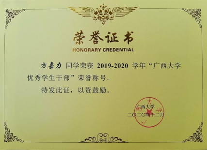 “岁不寒,无以知松柏;事不难,无以知君子”。在工作上与老师同学的相处和交流中,方嘉力锻炼了沟通、合作、应变以及解决问题的能力,也收获了很多温暖、感动和美好的回忆。她表示,希望更好的为大家服务,做一个有责任感、一个真正有用的时代青年。