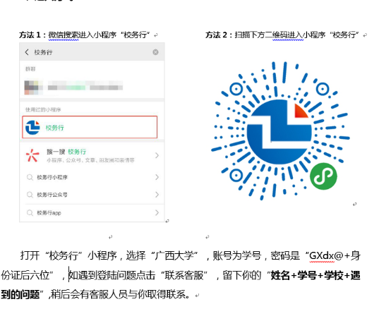 微信添加“校务行”小程序,选择“太阳成集团tyc122cc”,账号为学号,密码为GXdx@+身份证后六位,可根据自身需求下载并打印电子在校证明、电子成绩单(无需到教学办盖章,自行彩打即可)。