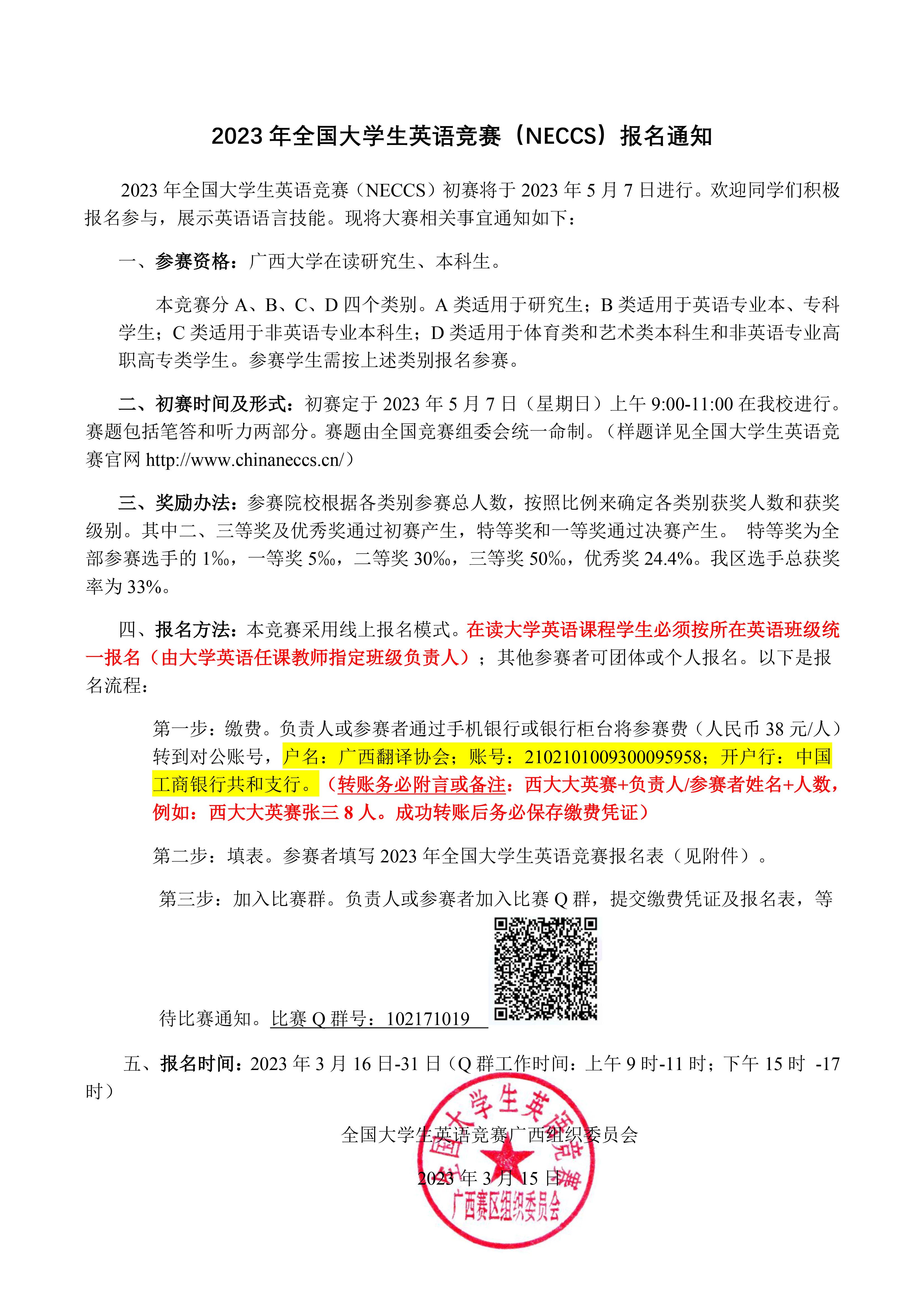 2023年全国老员工英语竞赛(NECCS)报名通知