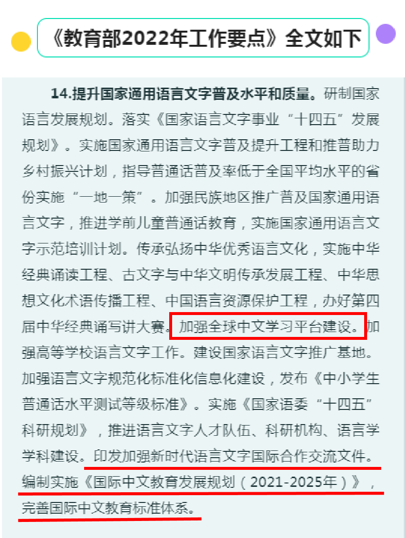 目前,国家对国际中文教师给予了政策方面的大力支持,着力开展国际中文教师、国际中文志愿者、国际中文网络课堂等项目。