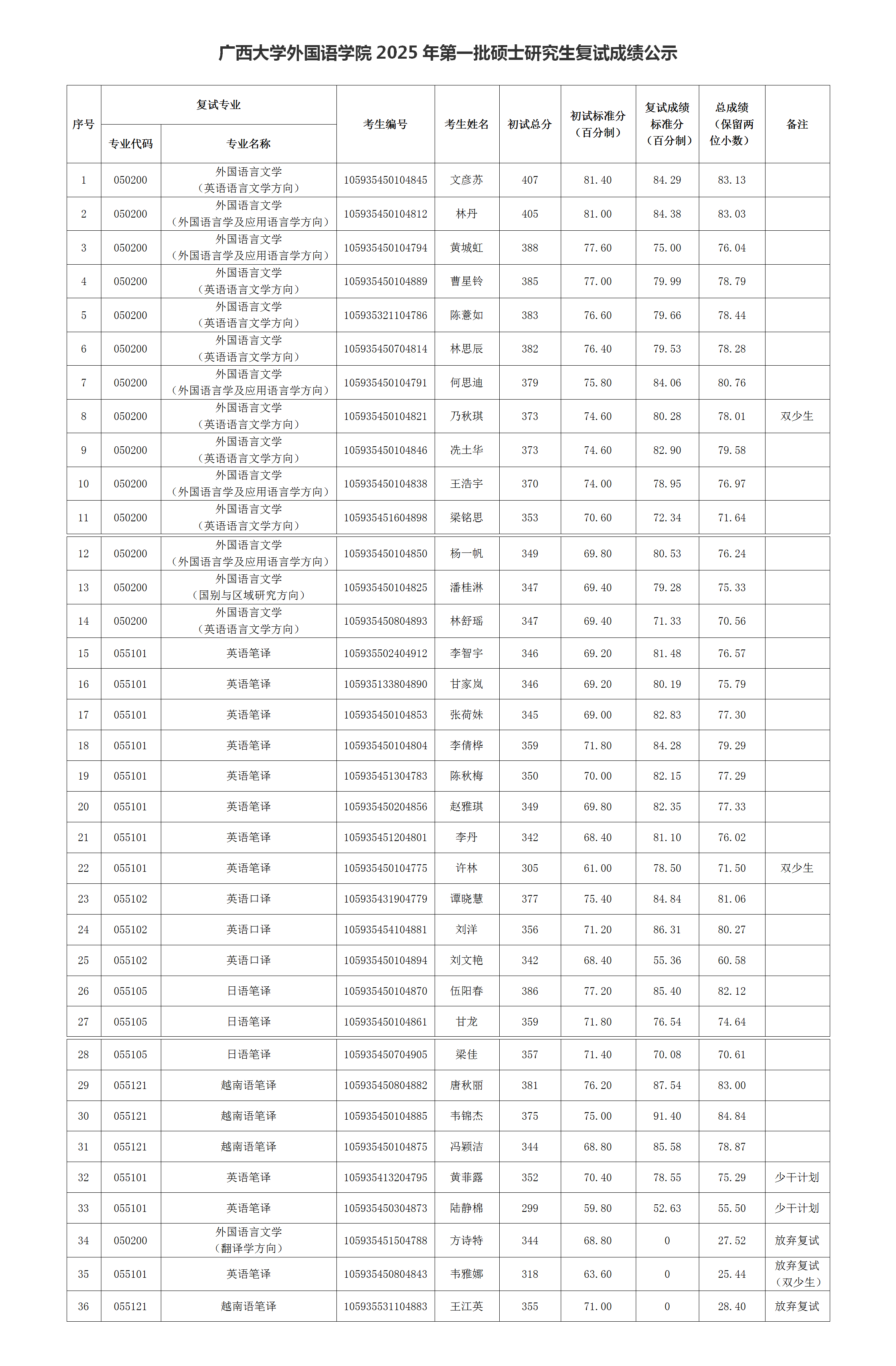 太阳成集团tyc122cc2025年第一批硕士研究生复试成绩公示