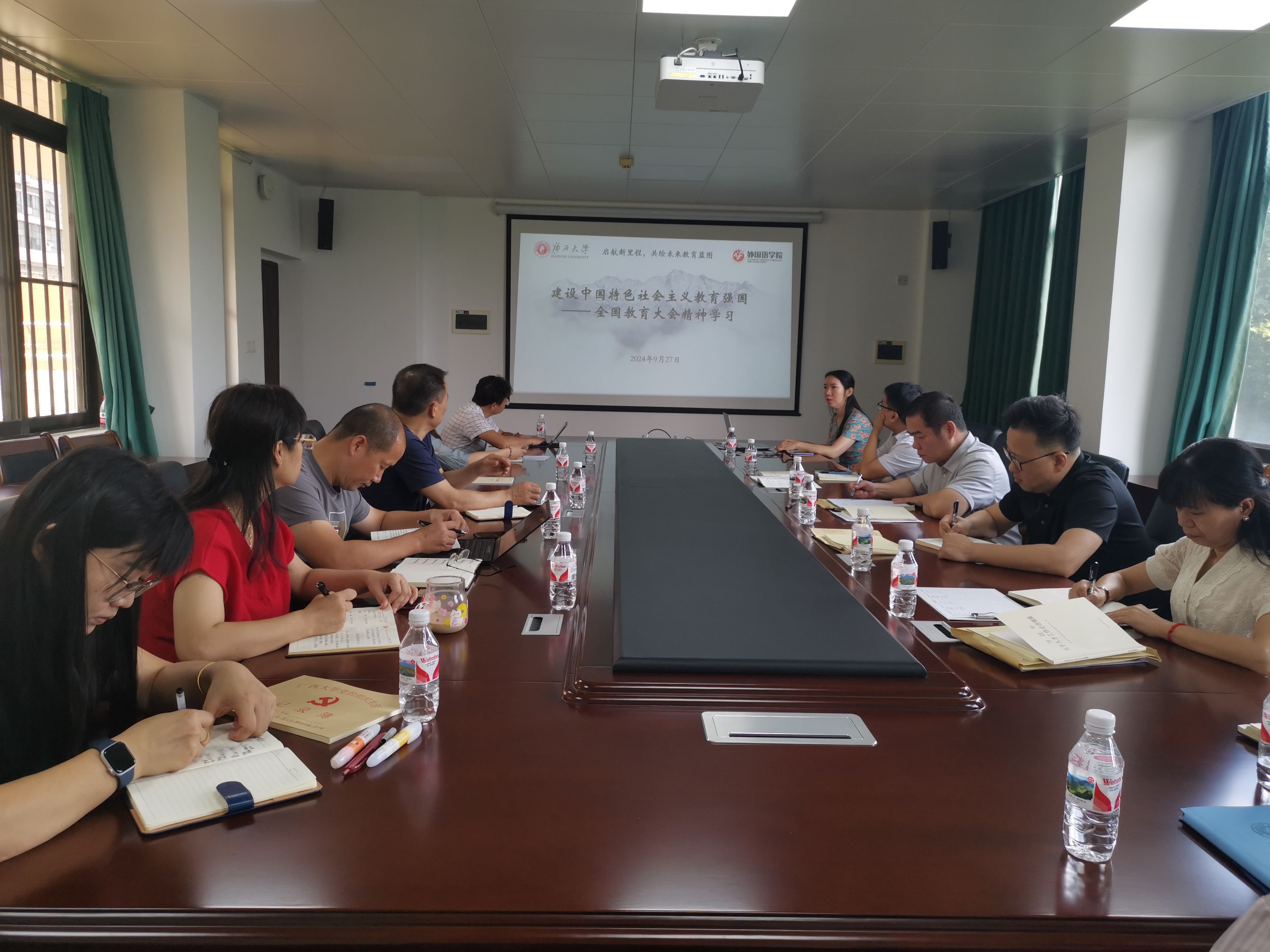 会议传达学习了习近平总书记在2024年全国教育大会上的重要讲话精神,强调指出,要认真学习领会、深入贯彻落实,把思想和行动统一到习近平总书记重要讲话精神和党中央决策部署上来,坚持不懈用习近平新时代中国特色社会主义思想铸魂育人,锻造好落实立德树人根本任务的关键课程,务实功、出实招、求实效,加强高素质专业化教师队伍建设,弘扬教育家精神,全面深化教育综合改革,构建好有利于教育高质量发展的体制机制,奋力谱写教育强国建设崭新篇章。