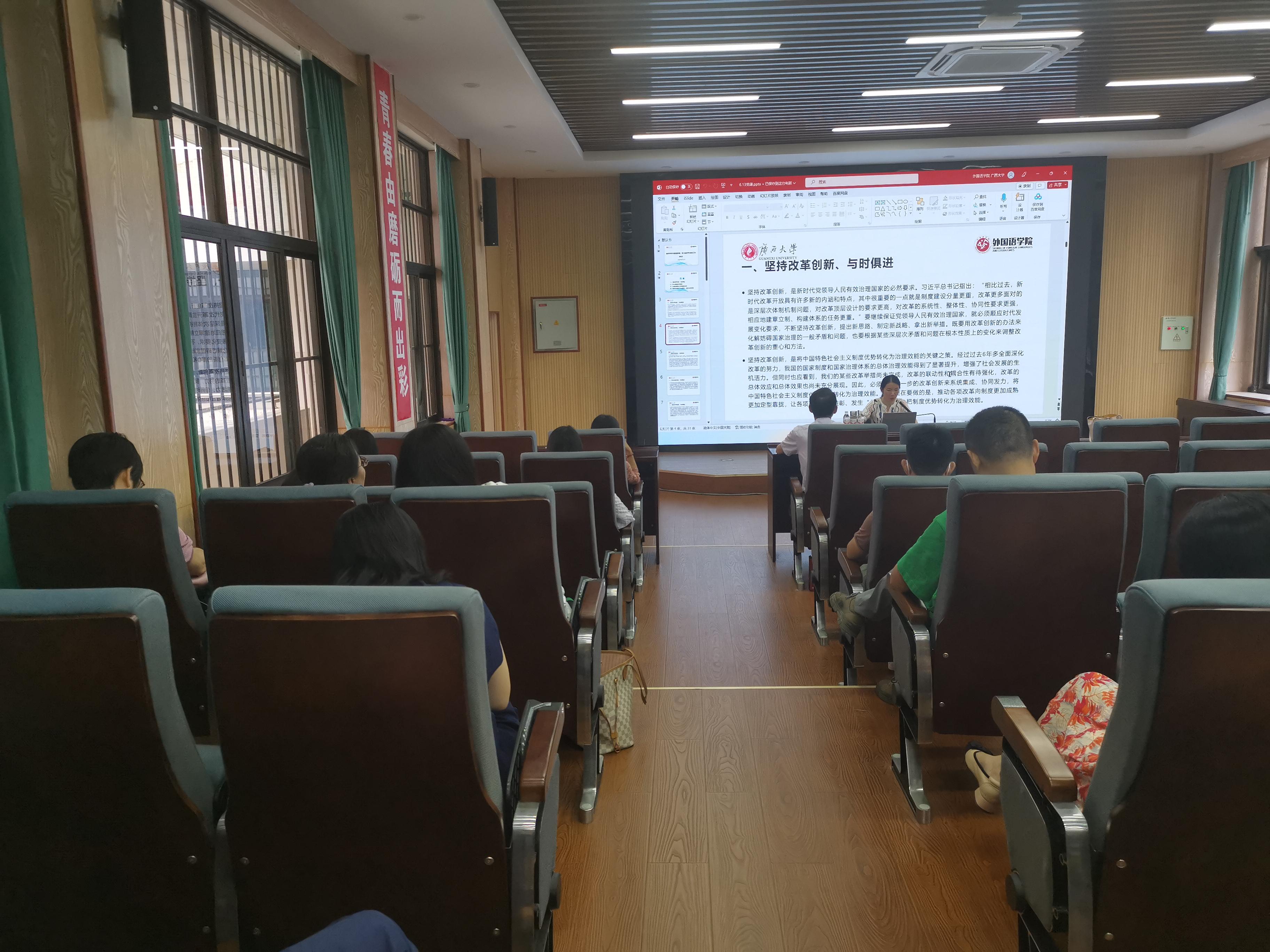 6月13日下午,公司党委在公司融通报告厅举办学习贯彻习近平新时代中国特色社会主义思想主题教育专题党课。公司党委书记黄开勇、副经理梁燕华、白佳芳在学习调研基础上讲专题党课,全体教师党员参加党课。